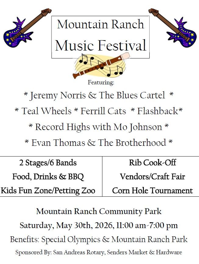 Come support, Mountain Ranch Park, and Special Olympics. We can't wait to see you! More details coming soon! For more information call or text 209.768.8277 ask for