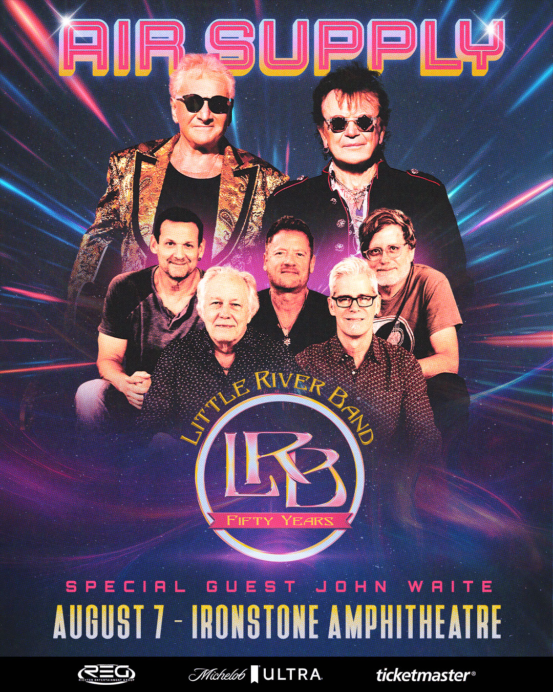 MURPHYS, CA — Legendary hitmakers Air Supply and Little River Band will bring an unforgettable night of classic hits to Ironstone Amphitheatre on Friday, August 7, 2026, with John Waite starting the show. Showtime is 6:30 PM.