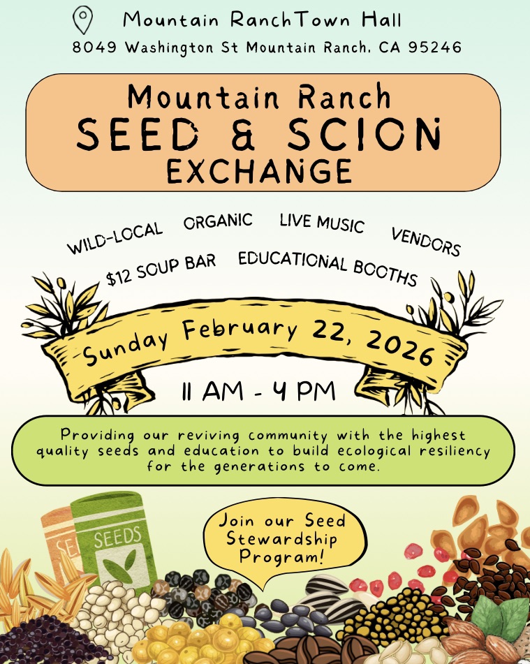 22feb11:00 am4:00 pmMountain Ranch Seed & Scion ExchangeMountain Ranch Town Hall
